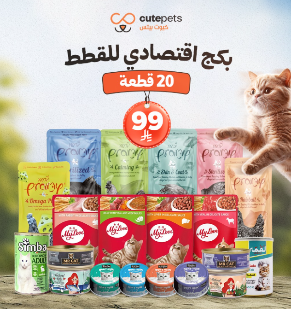 امنح قطتك التغذية اليومية اللي تحتاجها دون ما تضغط على ميزانيتك مع اكل رخيص للقطط بكج 20 قطعة طعام رطب بجودة ممتازة وسعر لا يُقاوم.