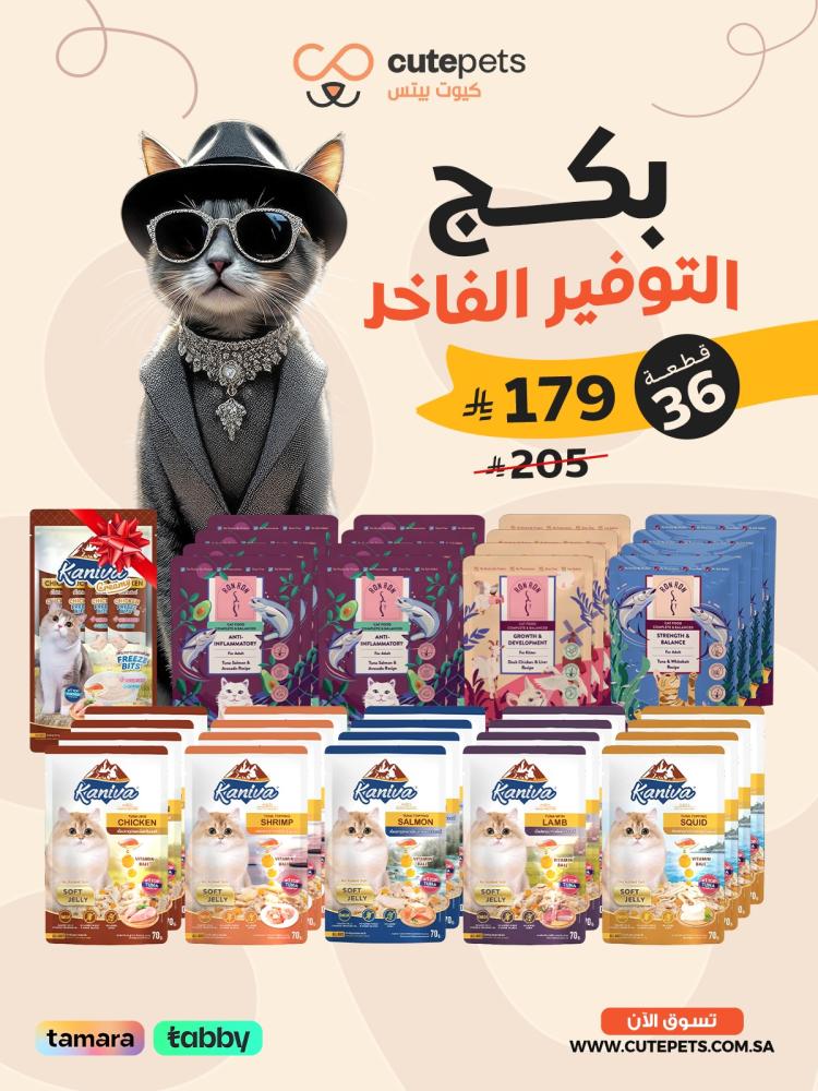 مكونات بكج التوفير الفاخر كانيفا ورون رون أكل قطط بالجملة 36 قطعة