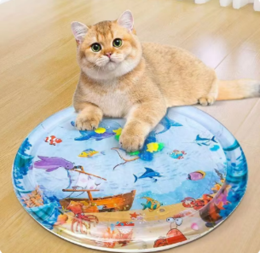 • تصميم تفاعلي: الألعاب داخل الحصيرة تتحرّك بفعل الماء لتمنح قطك مزيدًا من المتعة والتحفيز.