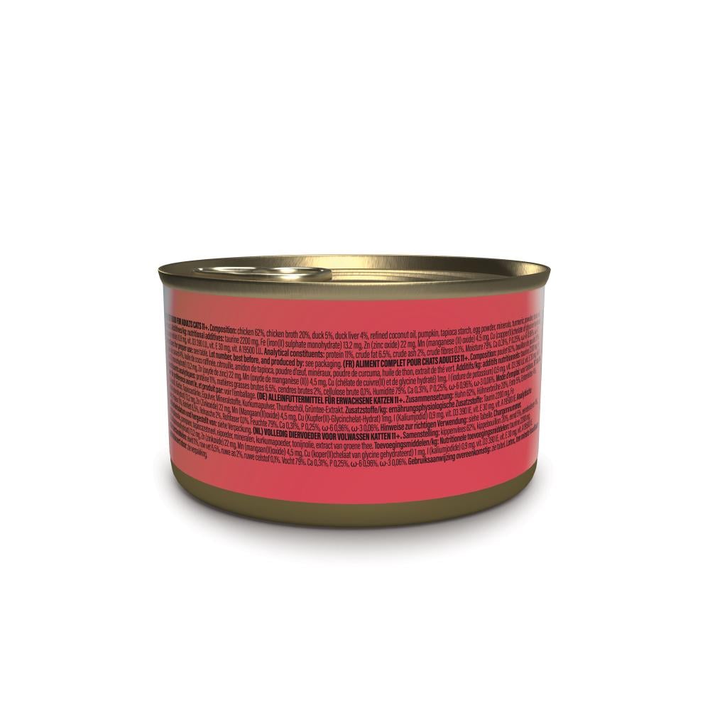 • سهل المضغ: قطع الدجاج والبط المفرومة تجعل الأكل مريحًا للقطط الأكبر سنًا.