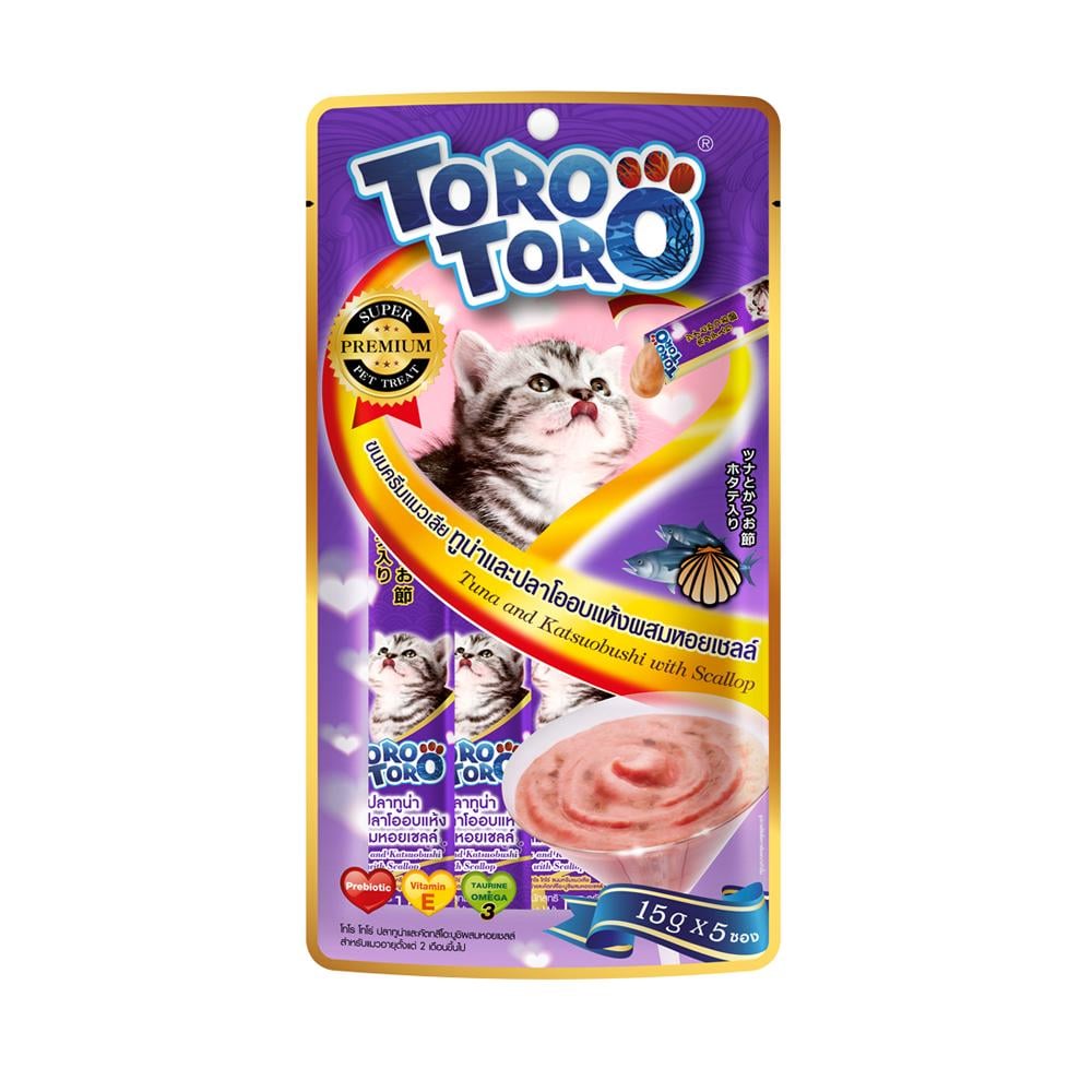 تورو مكافأة كريمي للقطط بالتونا والمأكولات البحرية هو منتج فريد ومتميز يهدف إلى إسعاد وإرضاء قطتك العزيزة. يأتي هذا المنتج في عبوة تحتوي على 5 اكياس صغيرًا، حيث يزن كل كيس15 جرامات.